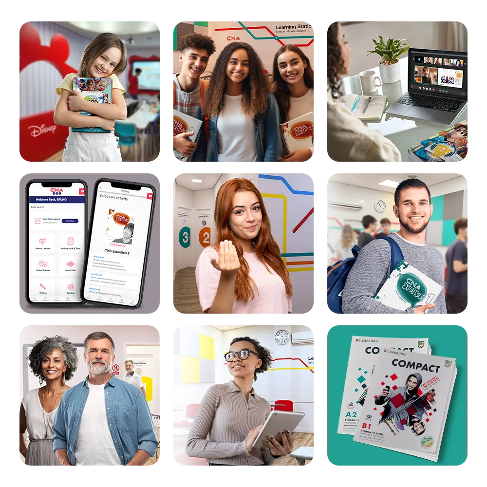 Imagens de algumas das escolas espalhadas pelo país. Para conhecer o CNA da sua região, preencha o formulário do topo da página.